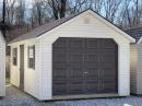 | This 12x20 Chalet Garage has Pearl vinyl siding with Dark Brown shutters and Burnt Sienna architectu... |