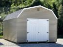 | This 10x16 Big Barn has Almond vinyl siding with White trim and Charcoal Black architectural shingle... |